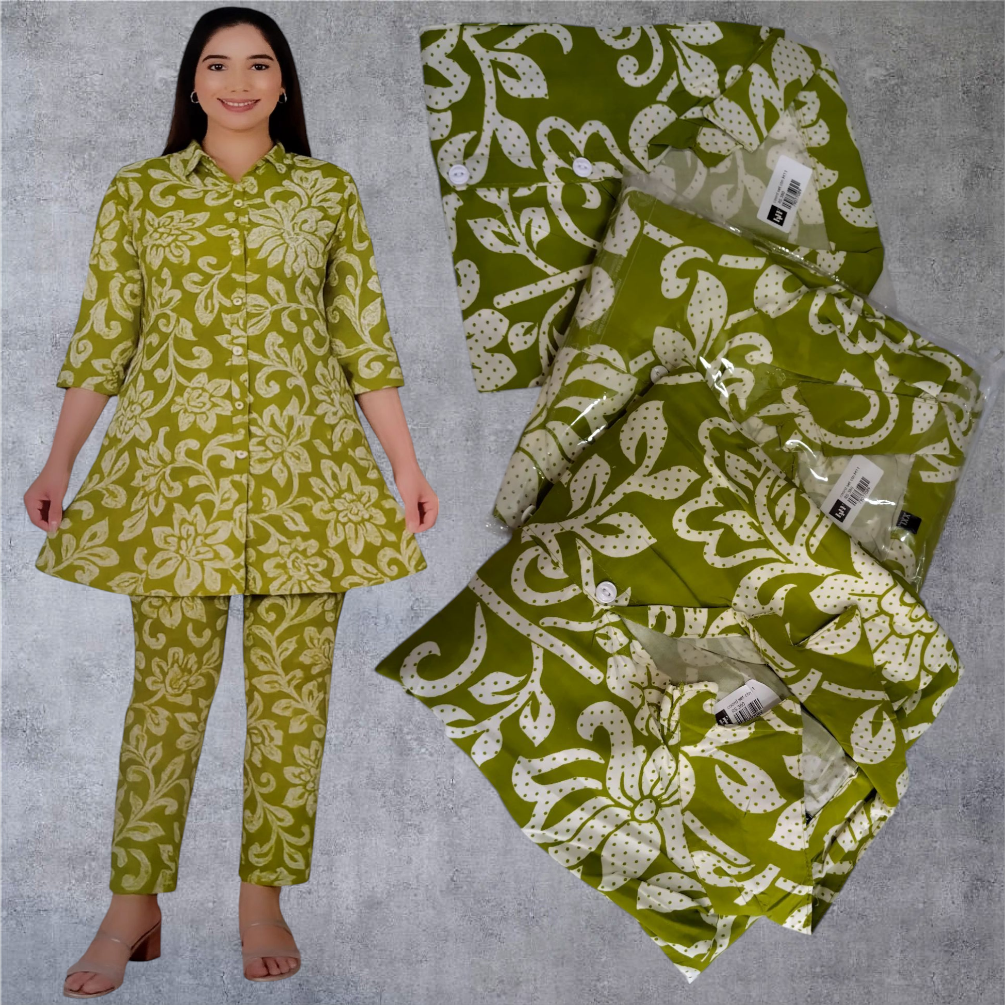 Color & Print: Same light green with white floral design, creating a matching coordinated look.