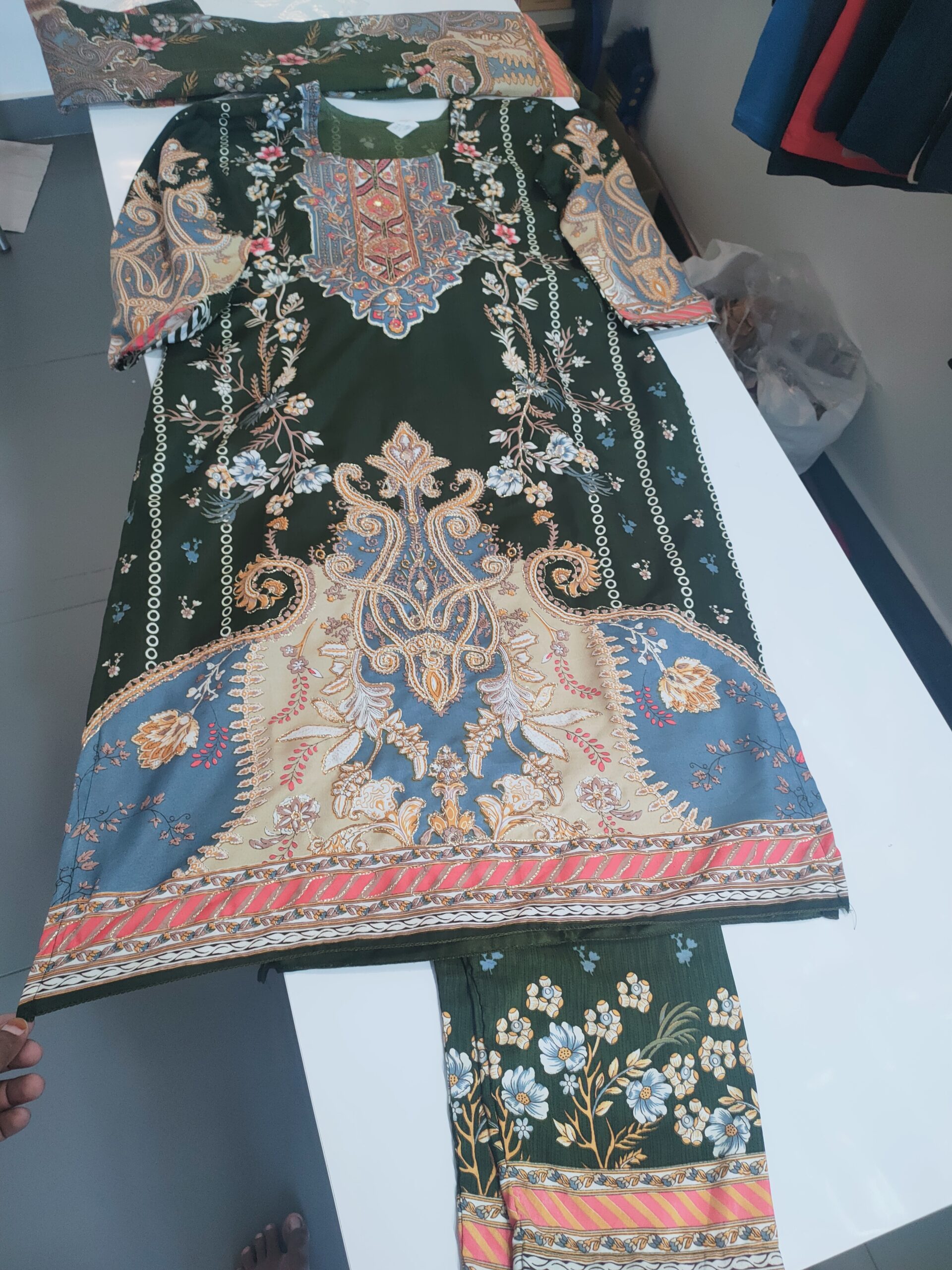 👗 Type:Pakistani Printed Straight Kurti Set with Pant & Dupatta (3-piece)